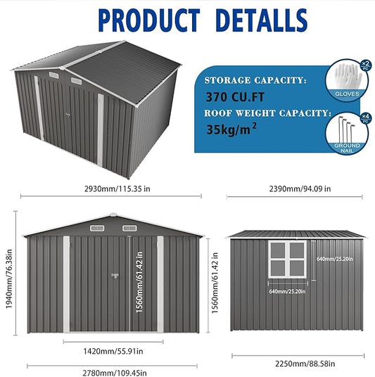 10x12 FT Outdoor Storage Shed with Windows, Metal Sheds & Outdoor Storage with Lockable Door and 4 Vents, Outside Storage Shed Waterproof for Backyard, Garden, Patio, Gray
