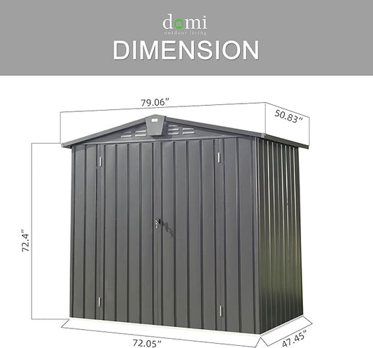 Domi Outdoor Storage Shed 6' x 4', Metal Waterproof Tool Shed Utility Storage House with Double Lockable Doors & Air Vent for Backyard Garden Lawn Patio