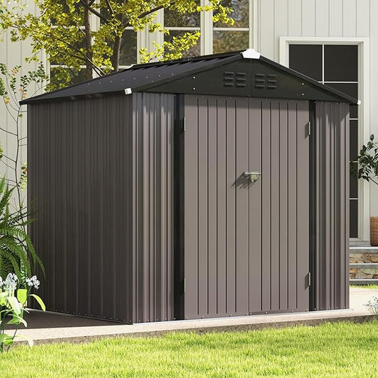 Patiowell 8x6 FT Outdoor Storage Shed, Metal Tool shed & Outdoor Storage with Lockable Doors & Air Vents, for Backyard Garden Patio, Brown