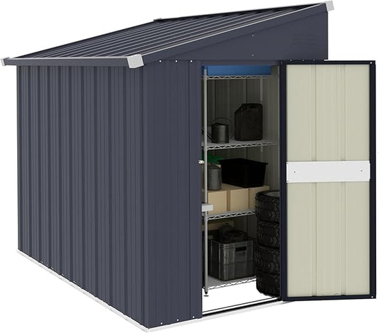 MUPATER Outdoor Storage Shed 4x6 FT, Garden Tool Shed, Metal Lean-to Shed Kit for Backyard Lawn with Lockable Door and Vents, Grey