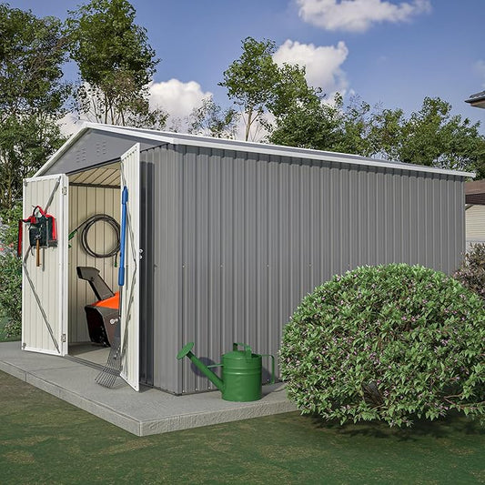 10X8 FT Outdoor Storage Shed, All Weather Metal Sheds with Lockable Doors, Tool Shed for Garden, Patio, Backyard, Lawn (Grey, 10x10ft)