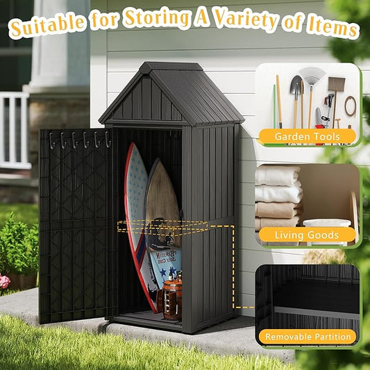 Storage Shed Outdoor Lockable,Waterproof Resin Garden Tool Shed, Heavy-Duty Weather-Resistant Cabinet for Patio, Backyard, or Garage (Black)