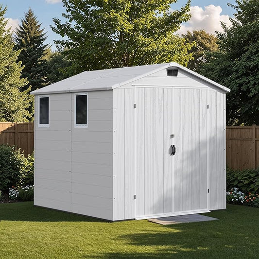 Patiowell 6 x 8 FT Outdoor Storage Shed with Floor - Resin Tool Shed with Lockable Door & 2 Windows, Easy Assembly for Garden, Backyard, Lawn Equipment, Light Gray