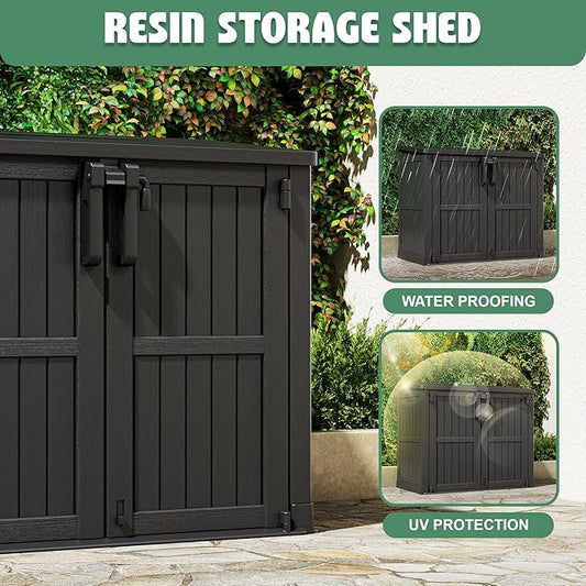 Horizontal Resin Storage Shed 36 Cu Ft with Lockable Doors, Portable Outdoor Storage Cabinet -Easy to Assemble,Sheds & Outdoor Storage, Waterproof Outdoor Storage Box for Backyards,Black
