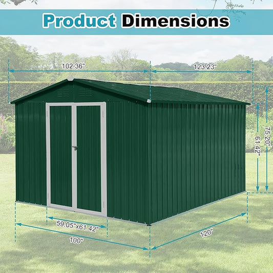 10X8 FT Outdoor Storage Shed, All Weather Metal Sheds with Lockable Doors, Tool Shed for Garden, Patio, Backyard, Lawn (Brown, 10x10ft)