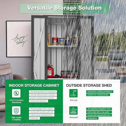Storage Shed Outdoor Lockable,Waterproof Resin Garden Tool Shed, Heavy-Duty Weather-Resistant Cabinet for Patio, Backyard, or Garage (Grey)