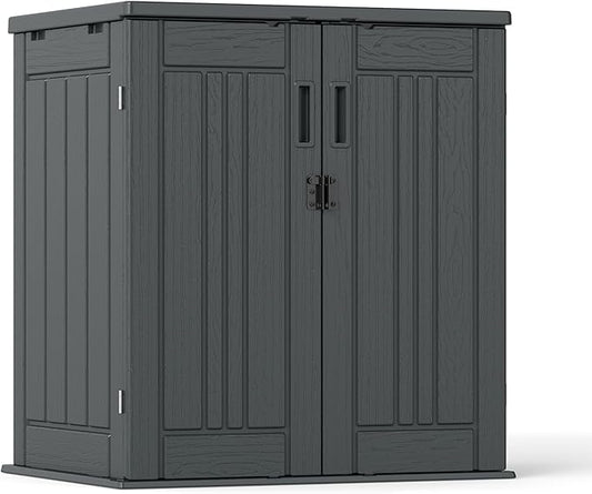 MCombo Outdoor Storage Cabinet, Small Storage Shed with Removable Shelf, Wood Garden Shed with 2 Doors for Yard Patio Lawn (24.6 x 18.3 x 38.2 inch) 0985 (Brown)