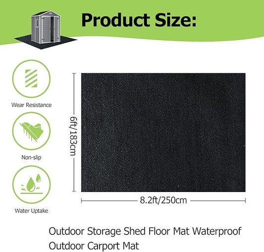 Outdoor Storage Shed Floor Mat, 6 * 8.2FT Waterproof Washable Garden Flooring Pad with Non Slip Backing, Soft Furniture Patio Covering Carport dust Oil Mat-Tool Shed, Storage Shed Not Included