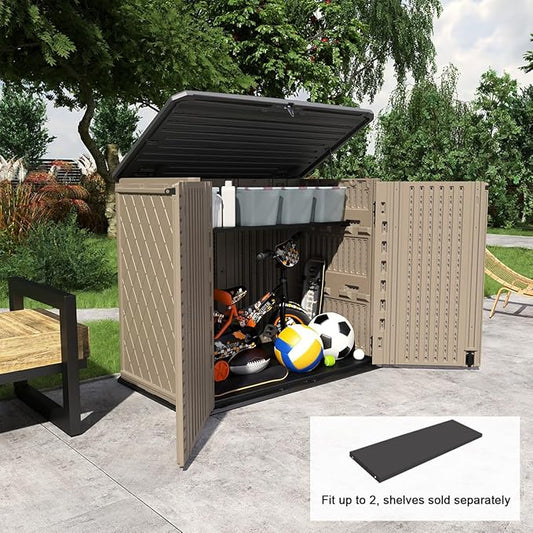 KINYING Outdoor Storage Shed - Horizontal Storage Cabinet Waterproof for Garden, Patio, Backyard, Storage Box for Easy Storage of Garbage Cans, Tools, Lawn Mower, 26 Cubic Feet,Dark Brown