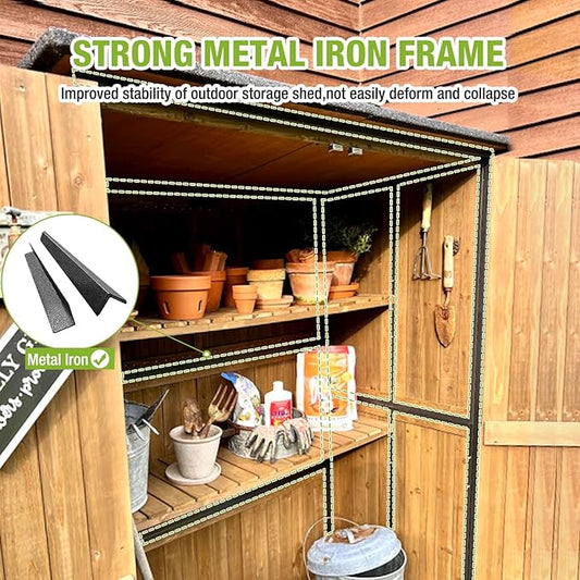 Outdoor Storage Shed with Metal Frame,Large Wooden Tool Cabinet with Adjustable Shelfs, House Garden Shed for Backyard Garden Patio Lawn