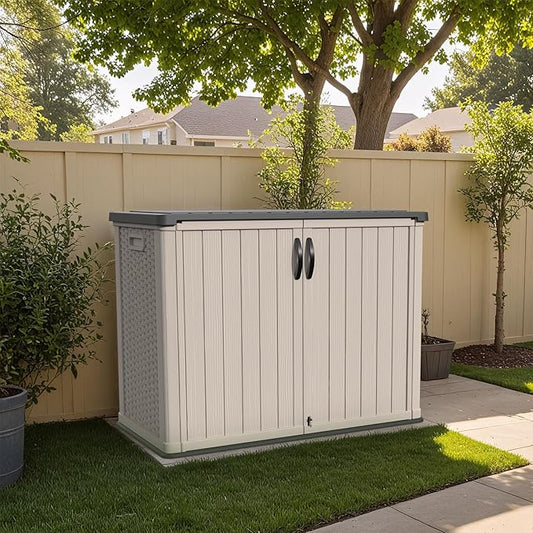 Patiowell 26 cu.ft Plastic Outdoor Storage Shed, Lockable Waterproof Resin Outdoor Storage Cabinet Tool Shed for Garden Tools, Garbage Cans, Pool Supplies, Beige(Not Include Shelves)