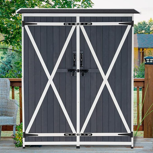 MCombo Outdoor Storage Cabinet with Shelves, Wood Garden Shed with Floor, Outside Tool Shed with 2 Lockable Doors for Backyard Patio Lawn, 1400 (Gray)