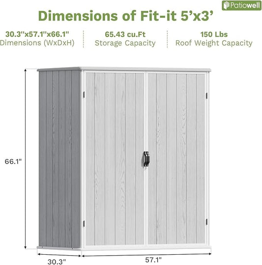 Patiowell Outdoor Storage Shed 5x3 FT, Plastic Garden Organizer Cabinet with Lockable Doors & Strong Roof for Patio Furniture, Pool Accessories, Lawn Tools, Light Grey