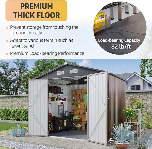 Aoxun 7x5 FT Outdoor Storage Shed with Floor Garden Metal Shed with Lockable Door Outdoor Large Shed for Tool, Garbage Can, Bike, Mower, Brown