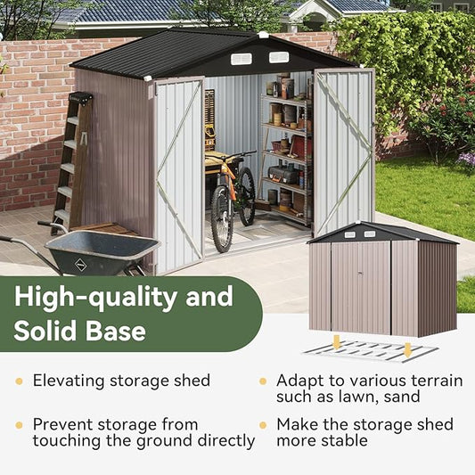 Aoxun 6'x4' Outdoor Metal Storage Shed with Lockable Door- Ideal for Tools, Garden Equipment & Bikes, Perfect for Patio Placement(Base Included/Brown)