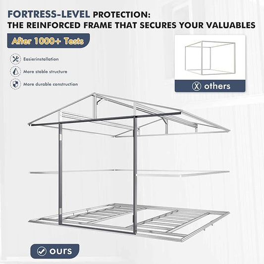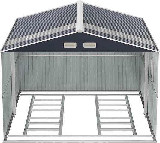 10x12 Metal Shed with Floor Frame Kit, Reinforced Construction - Translucent Roof Panels for Natural Light, Lockable Doors, Vents and Windows | Weatherproof Outdoor Storage for Garden/Backyard/Patio