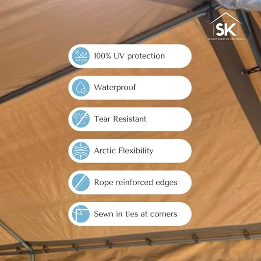 16 Mil Valance Replacement Canopy Waterproof Tarp - True Fit Heavy Duty Tarp with UV Protection, Tear Resistance, Arctic Flexibility & Sewn-in Ties 10x20 High Peak Frames