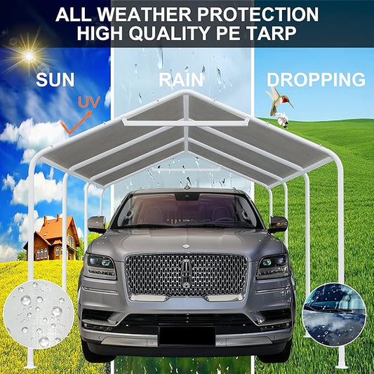 10 x 20 Ft Carport Replacement Canopy Cover Garage Top Tent Shelter Tarp with Free 44 Ball Bungee Cords,Grey(Only Cover, Frame Not Include)
