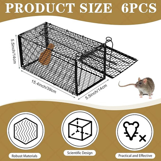 Qualirey 6 Pcs Humane Rat Trap Small Chipmunk Mouse Squirrel Cage Rodent Animal Mice Voles Hamsters Cage Catch and Release Trap for Home Garden Indoor Outdoor(15.4 x 5.5 x 5.5 Inch)