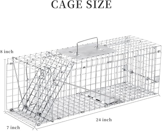 Animal Traps,Live Animal Trap for Cats,Rabbits, Squirrels,cat Trap for Stray Cats, Live Traps for Raccoons, Steel Foldable with Pedal Triggers (24 x 7 x 8 inches)