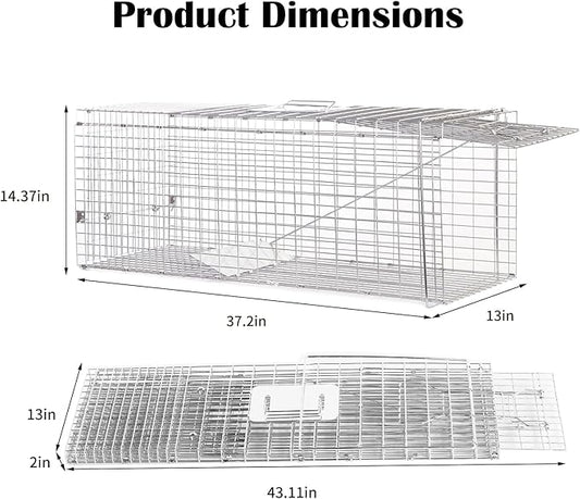 Animal Traps,Live Animal Trap for Cats,Raccoons,Rabbits,cat Trap for Stray Cats,Live Traps for Raccoons,Steel Foldable with Pedal Triggers (37.2 x 13 x 14.37 inches)