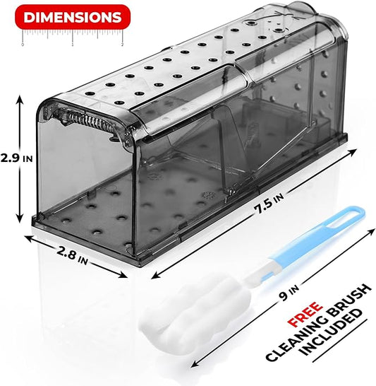 Humane Mouse Trap Pack of 4 - No Kill - Live Mouse Traps Indoor for Home Use - Reusable Rodent Traps for House Indoor, Safe & Effective Rat Trap Outdoor - Humane Mice Control with Cleaning Brush