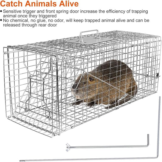 iMounTEK Humane Live Animal Cage Trap Cat Trap Cage Humane Catch & Release Live Rodent Collapsible Galvanized Wire for Kitten Rabbit Squirrels Small Raccoons Beavers Groundhogs Indoor Outdoor
