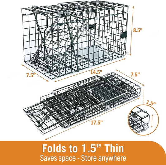 HOMESTEAD Collapsible Live Trap 14in – Small Animal Trap Cage for Red Squirrels, Adult Rats, and Small Weasels with 1″ Mesh Wire