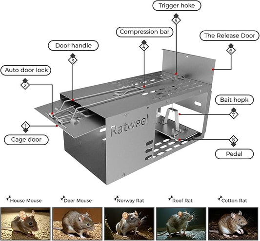 Humane Rat Trap Live Mouse Trap Indoor Catch and Release Animal Cage Multi Large Bait Outdoor Reusable Chipmunk Mice Voles Rodent That Work (1)
