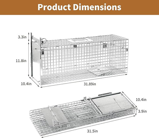 32" Humane Animal Cage Trap, Live Animal Cage Trap, Folding Animal Trap for Stray Cats, Raccoons, Rabbits, Skunks, Moles, Groundhogs and Armadillos up to 17 lbs