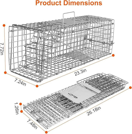 23.3’’x7.24’’x7.72’’,Foldable Humane Live Animal Trap Cage Cat Trap Catch Release Live Animal Rodent Cage for Indoor Outdoorfor Small Rabbit Squirrel Groundhogs Mole Gopher Cat