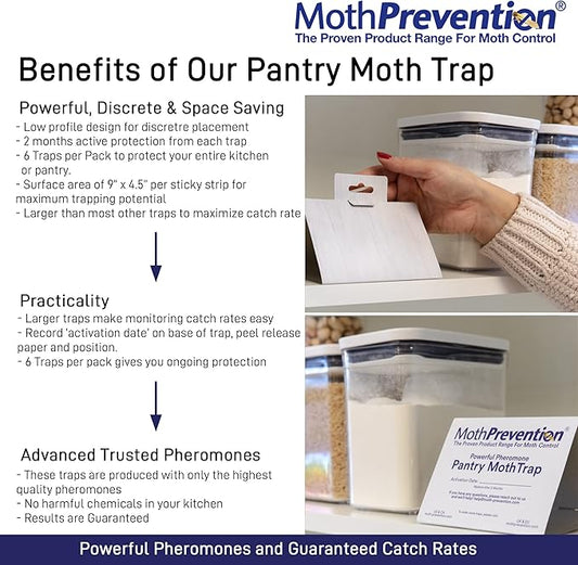 Powerful Pantry Moth Traps Pack of 6 | Moth Killer with Pheromones | Kitchen Moth Trap for Your Home | Maximum Pheromone Dispersal | No Odor