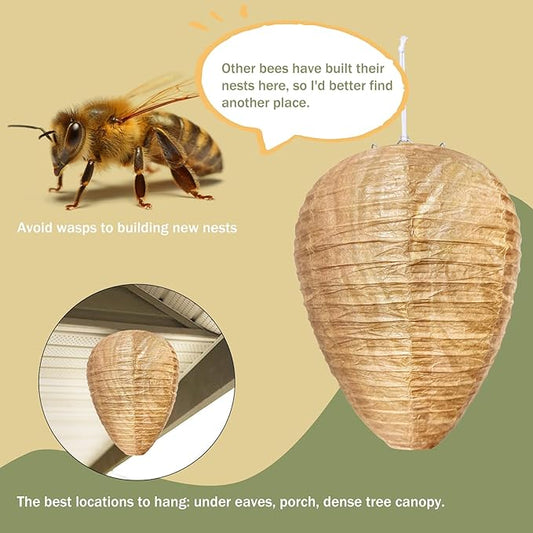 4 Pack Paper Fake Wasp Nest Decoy Hanging, Fake Hornet Nest Decoy Carpenter Bee Deterrent, Wasps Trap Wasp Deterrent Outdoor Yellow Jacket Carpenter Bee Traps for Outsides Garden Patio
