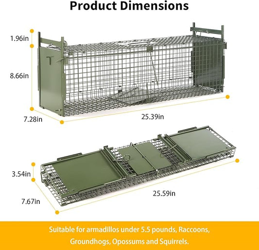 26" 2-Door Live Animal Traps for Stray Cats up to 5.5 pounds, Raccoons, Squirrel, Skunk, Mole, Groundhog, Armadillo, Rabbit, with Pedal Triggers