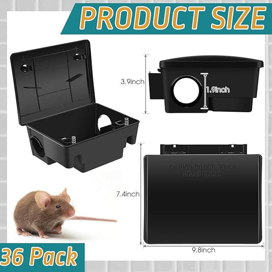 Qualirey 36 Packs Rat Bait Station Box Outdoor Rodent Rat Traps with Key Mouse Bait Station Indoor Mice Box for Outdoor Use Keeping Pets and Children Safe (Black)