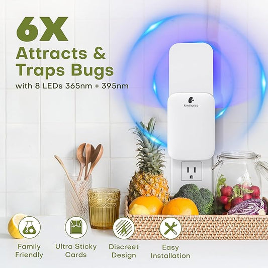 Flying Insect Traps Indoor - Plug-in Fly Catcher and Killers Includes Refills for House Flies, Fruit Flies, Gnats,Cover up to 800 ft², Off-White, 2 Traps + 8 Refills
