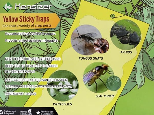 Kensizer 20-Pack Fruit Fly Trap, Yellow Sticky Gnat Traps Killer for Indoor/Outdoor Flying Plant Insect Like Fungus Gnats, Whiteflies, Aphids, Leaf Miners - 6x8 in, Twist Ties Included