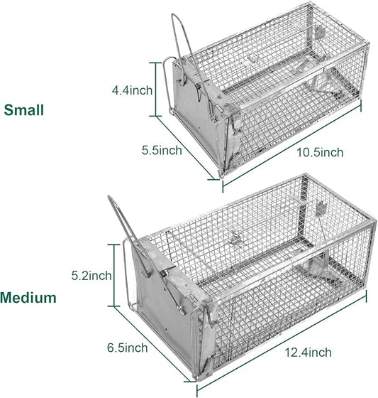 Kensizer 2-Pack Humane Rat Trap, Chipmunk Rodent Trap That Work for Indoor and Outdoor Small Animal - Mouse Voles Hamsters Live Cage Catch and Release