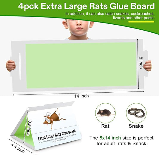 Qualirey 4 Pack Sticky Mouse Traps 8 x 14 Large Sticky Rat & Mouse Glue Boards for Inside Outside, Pre Scented Non Toxic Adhesive Traps with Enhanced Stickiness for Rat Mice Snake, Pet Safe