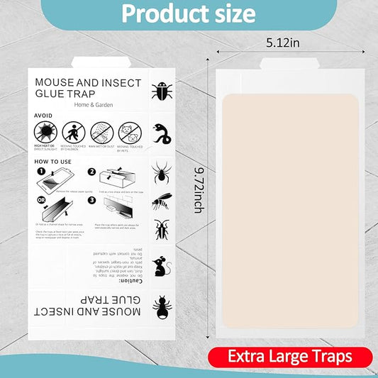 Qualirey Mouse and Insect Glue Boards Pest Glue Traps Bulk Large Mouse Rat Trap Sticky Adhesive for Mice Spider Moth Cockroaches Cricket House Indoor Outdoor Non Toxic(100 Pcs,9.72 x 5.12 Inch)