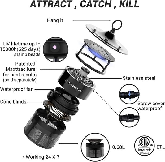 Outdoor Mosquito Trap – Premium Stainless Steel Insect Killer with UV Light & Octenol Lure, Rainproof, Ultra-Quiet, 15,000-Hour Lamp Life, Safe for Family & Pets