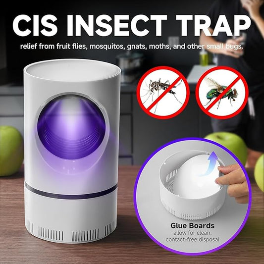 Flying Insect Trap, Fruit Fly Trap for Indoors, Fly Traps Indoor for Home Gnat Traps House Indoor, Bugs Pest Trap with Super Strong Suction and Quiet Operation, 5 Sticky Glue Boards