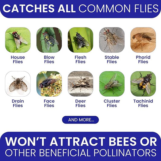 3 Fly Traps Outdoor Fly Trap for Patio with 6 Non-Toxic Dissolvable Bait Refills. Reusable Hanging Bug Catcher Killer for All Filth Flies for Outside Bug Control Yard Ranch. Hanging Chains Included