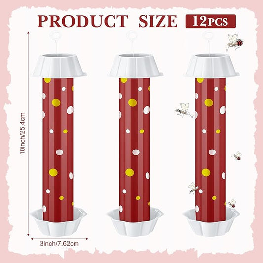 12 Pcs Sticky Fly Trap Fly Stick Indoor Outdoor Long Lasting Adhesive Fly Catcher with Hanging Hook for Wasps Gnats Bugs Insects Moths Fruit Flies Mosquitoes Spiders Fleas (Red, White)