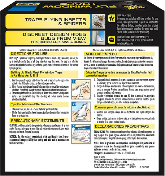 Black Flag Fly Stick, Trap Houseflies and Flying Insects, Pack of 6