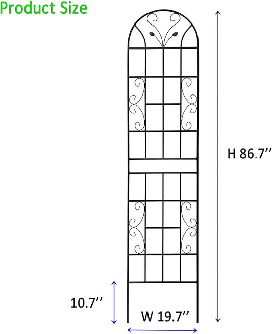 Metal Garden Trellis for Climbing Plants, 86.5" x 19.7" metal plant trellis outdoor, Black Iron Garden Trellis, Clematis Rrellis Outdoor, Arched Outdoor Decoration suitable for courtyards, lawns, gard