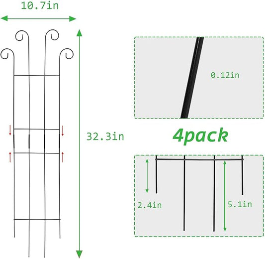 4 Pack 32'' Trellis for Potted Plants, Metal Garden Trellis for Climbing Plants Outdoor, Indoor Plant Trellis Black Coated Flower Pot Trellis for Climbing Plants Houseplants Vine Ivy