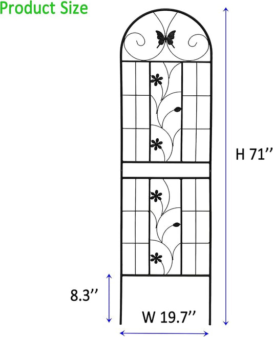 2 Pack Metal Garden Trellis for Climbing Plant Rose Stand, Black Outdoor 71" Tall Flower Support Iron Garden Fence (Black 71" H,2Pack