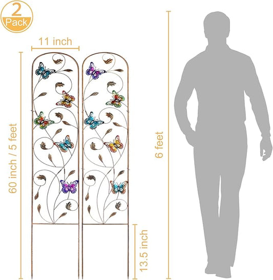 LEWIS&WAYNE 2 Pack Metal Garden Trellis with Colorful Butterfly 60 Inch High Outdoor Decoration Arched Fence Trellis for Climbing Plants for Patio, Lawn, Yard, Backyard, Wall Brackets