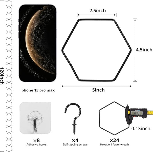 24 Pcs Chain Trellis for Climbing Plants, 120 Inch Long Metal Plant Trellis Indoor Outdoor, Garden Wall Vine Support Trellis, Plant Accessories for Ivy, Peonies, Hexagonal Design Black